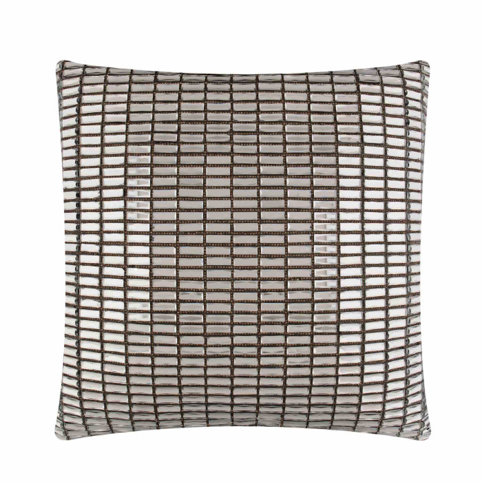 Take a walk down Fifth Avenue. This velvet pillow is soft to the touch, while the rectangular glass stones bordered by rhinestone sparkles make a dramatic statement. The carefully arranged glass rectangles not only catch artificial light but also dance with the rays of natural light, casting a dazzling shimmer across the room.