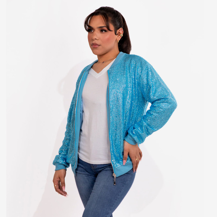 Strass Rhinestone Bomber Jacket - Aqua - Medium