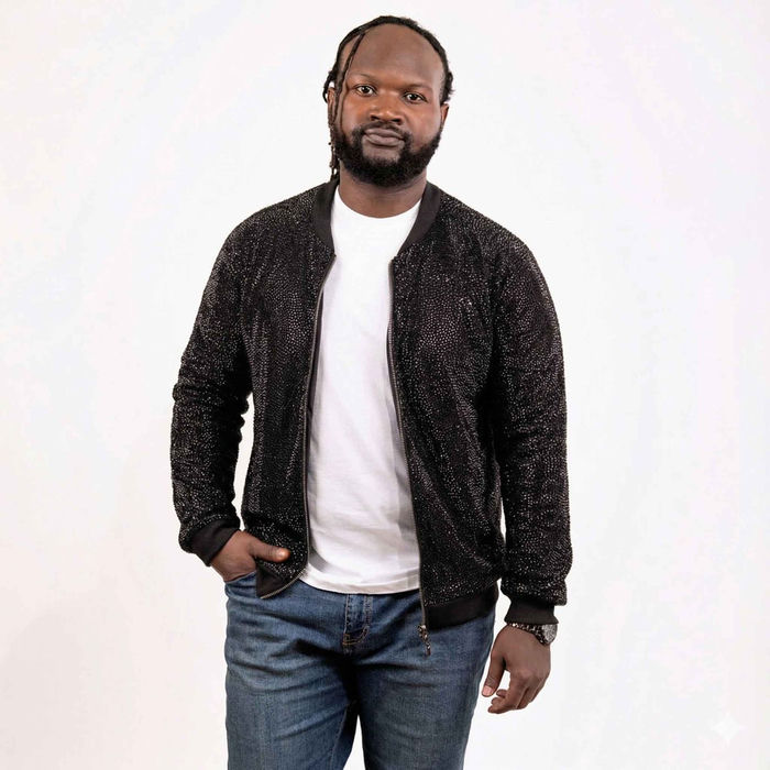 Description / Strass Rhinestone Bomber Jacket - Black - Extra Large